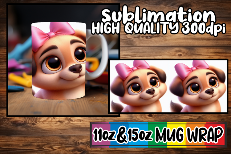 Charming whispers 11oz 15oz mug wrap, 3D Dog example image 1