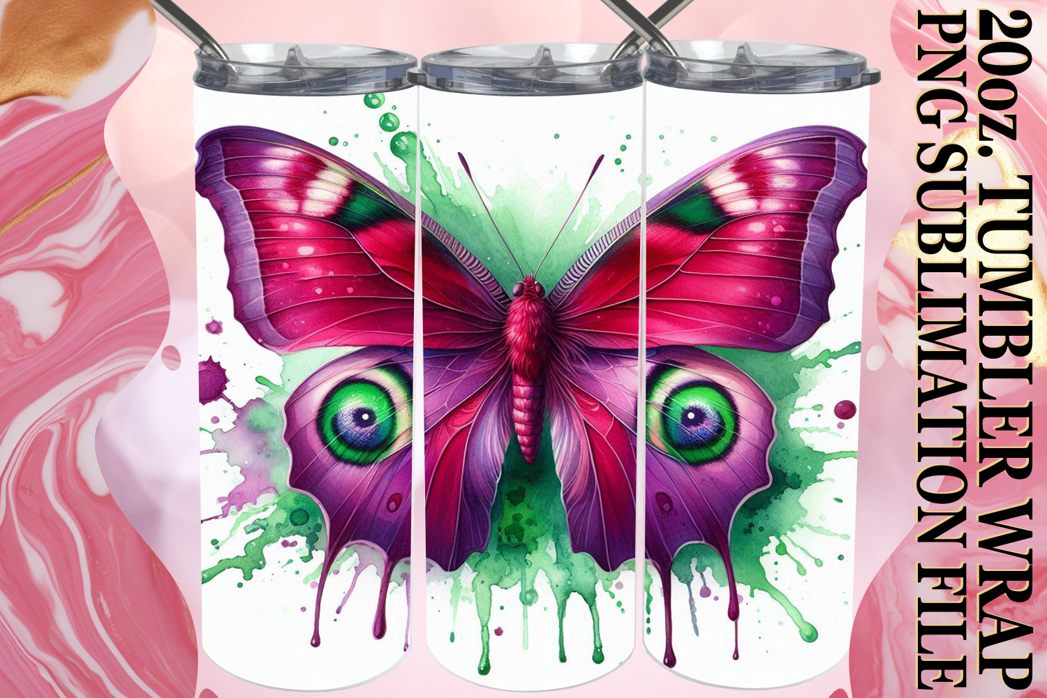 Create eye-catching tumblers with our gorgeous **20 oz Skinny Tumbler Wrap** sublimation design.