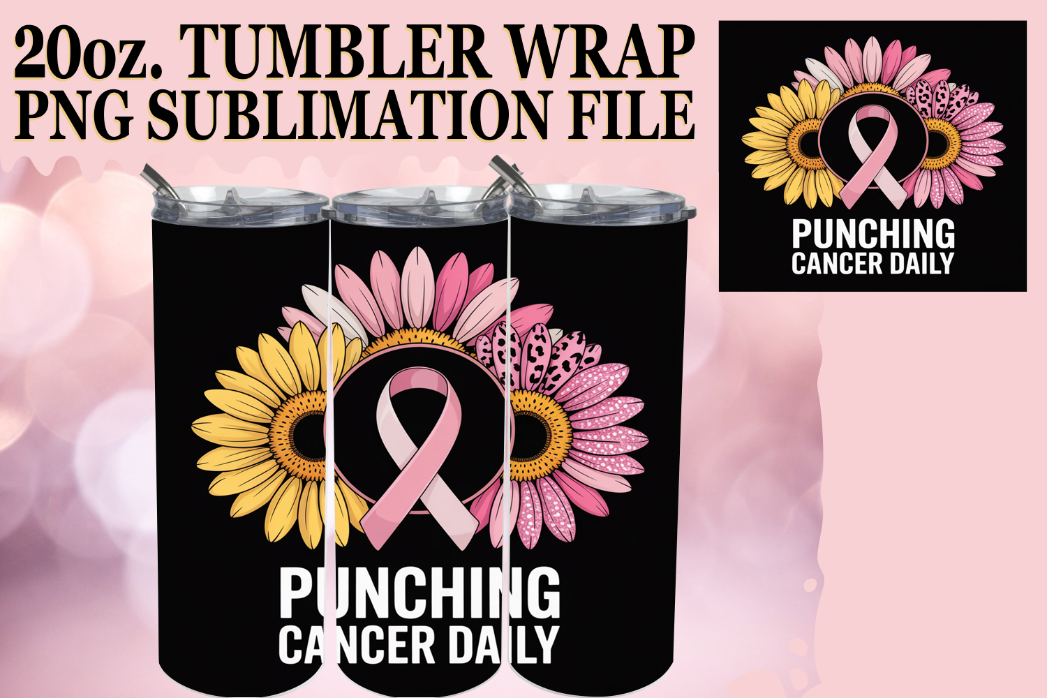 Bright Sublimation 20oz tumbler wrap, Breast Cancer example image 1