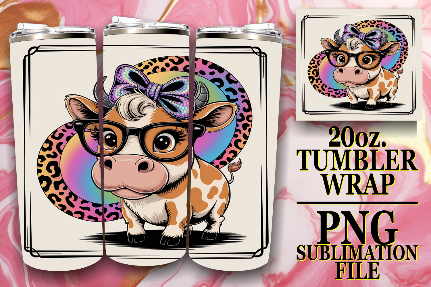 Serene days 20oz tumbler wrap, Cute Cow example image 1