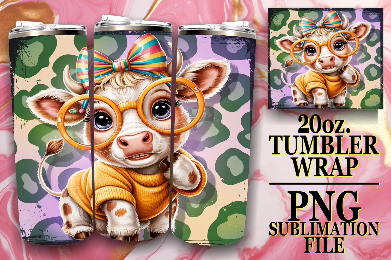 Similar Design Products to Dreamy Reflections 20oz tumbler wrap, Cute Cow