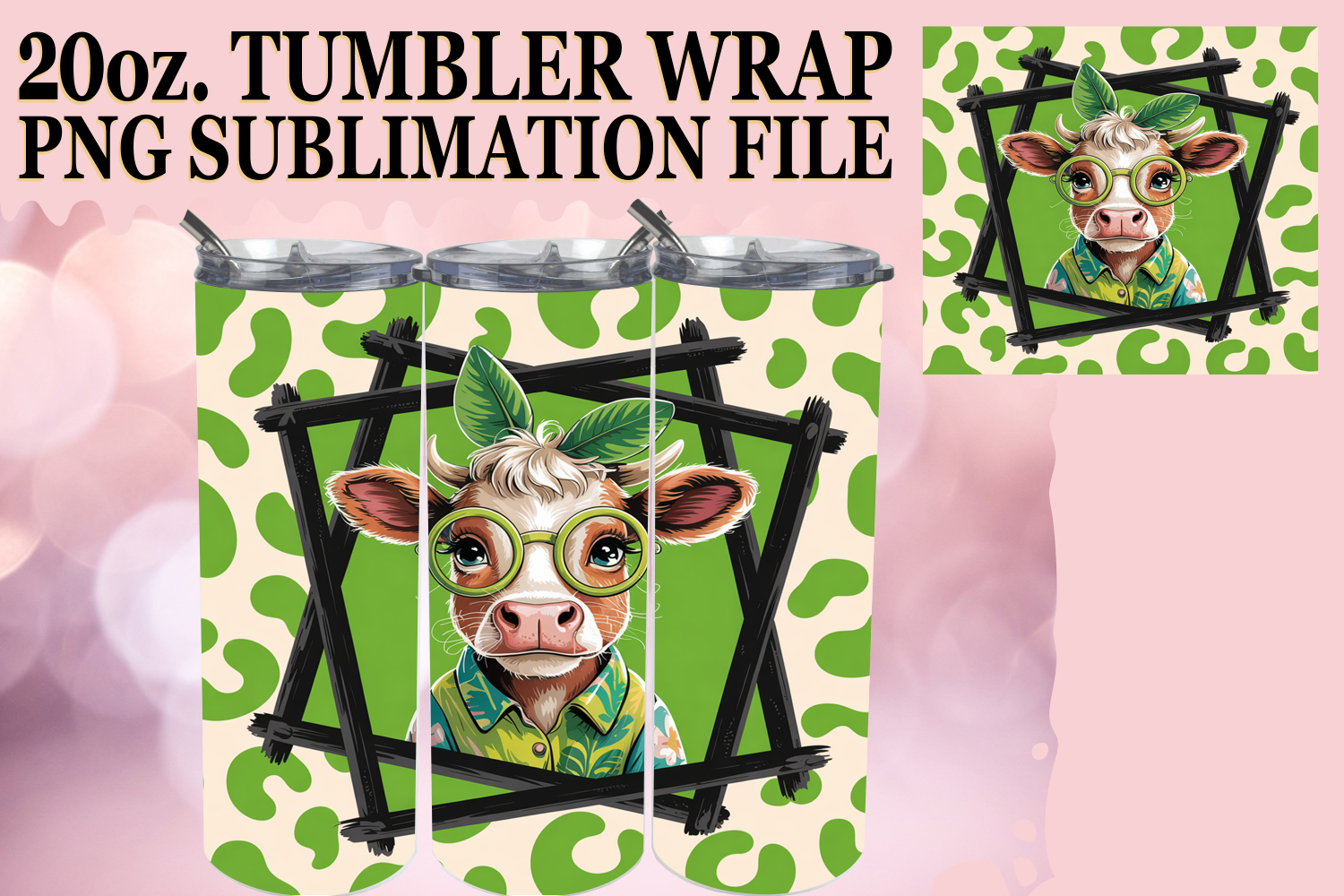 Cheerful Days 20oz tumbler wrap, Cute Cow