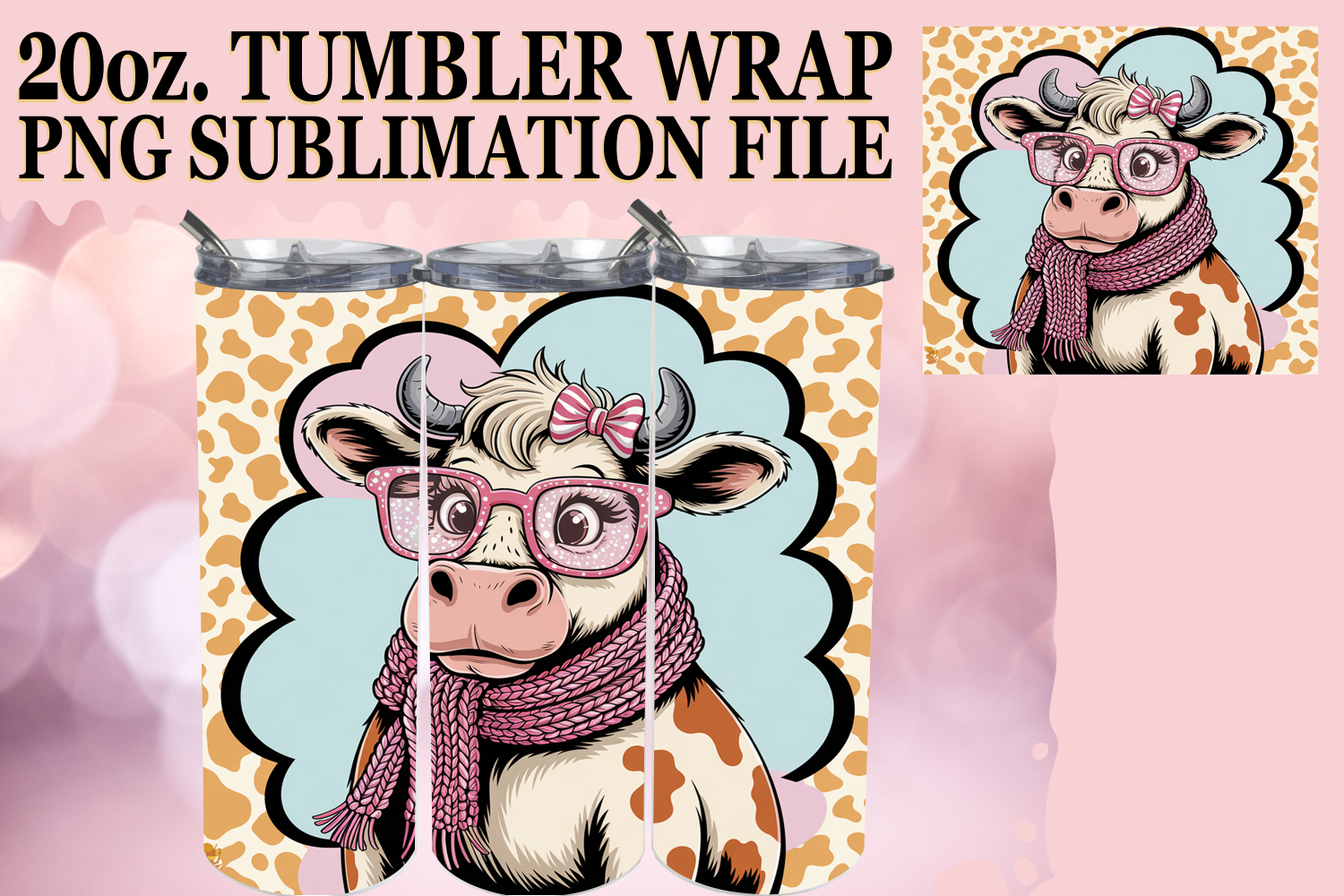 Joyful Adventures 20oz tumbler wrap, Cute Cow