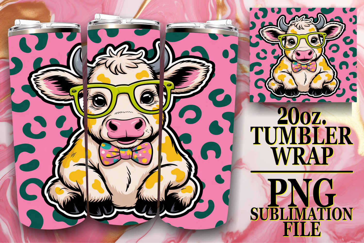 RADIANT JOY 20oz TUMBLER WRAP, Cute Cow