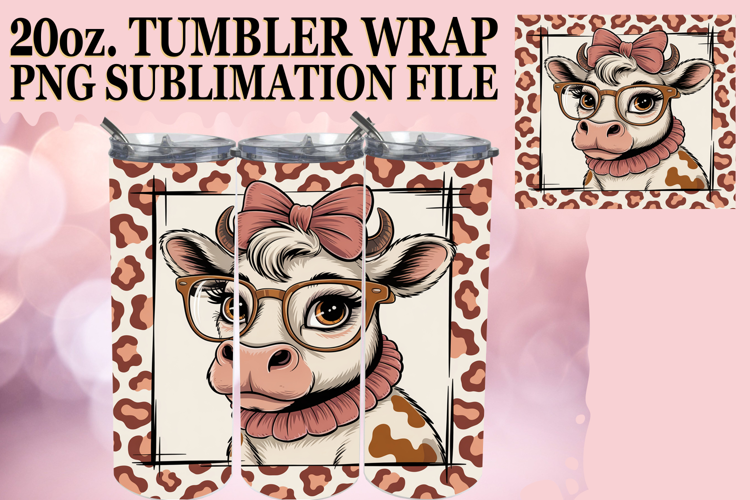 Cheerful Reflections 20oz tumbler wrap, Cute Cow example image 1