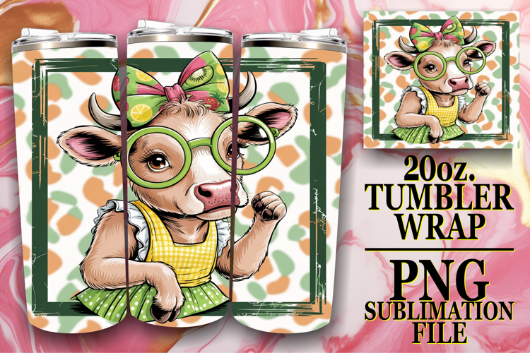 Luminous Sublimation 20oz tumbler wrap, Cute Cow