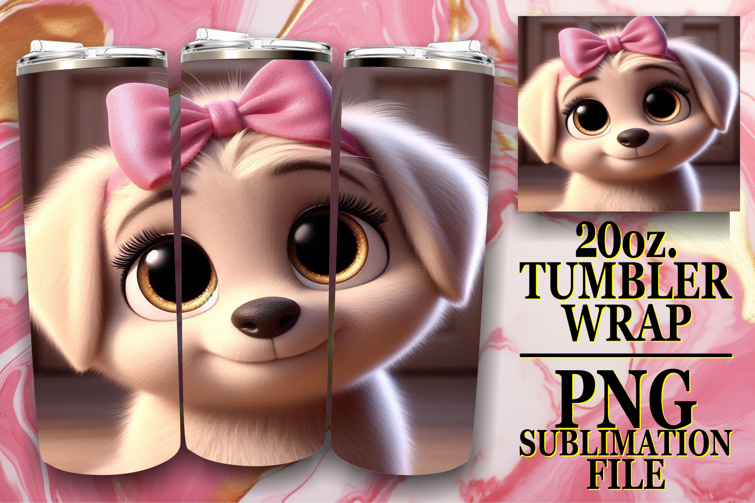 RADIANT EVENINGS 20oz TUMBLER WRAP, 3D Dog example image 1