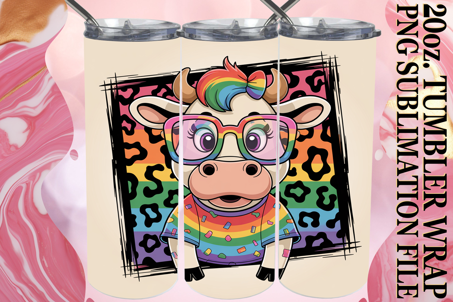 Magical Sublimation 20oz tumbler wrap, Cute Cow example image 1