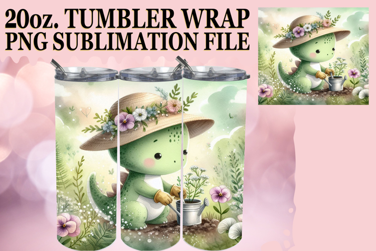 ENCHANTING HORIZONS 20oz TUMBLER WRAP, Cute Dino example image 1