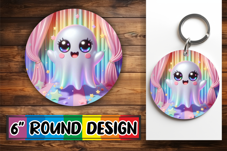 Bright Circle Keychain Design PNG, 3D Cute Ghost example image 1