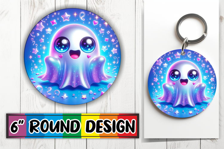 Cozy Keychain Round Design PNG, 3D Cute Ghost example image 1