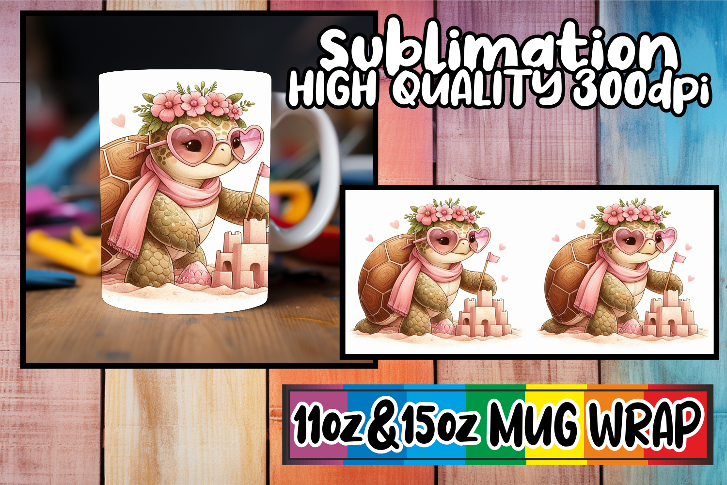 Vibrant hues 11oz 15oz mug wrap, Turtle