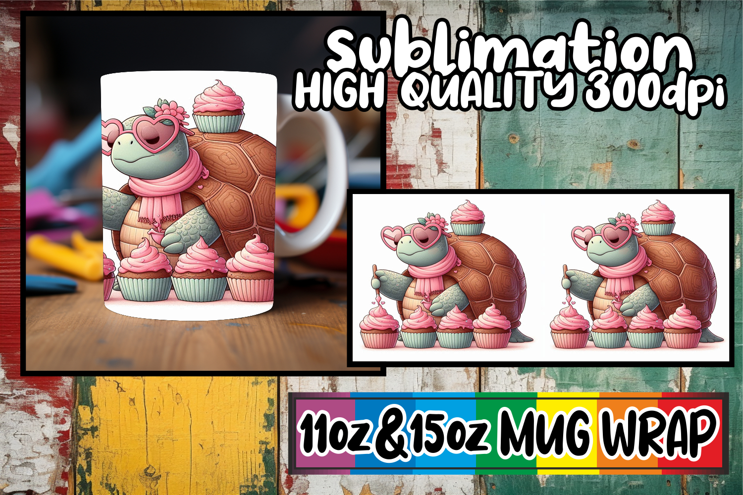 Lively spirit 11oz 15oz mug wrap, Turtle example image 1