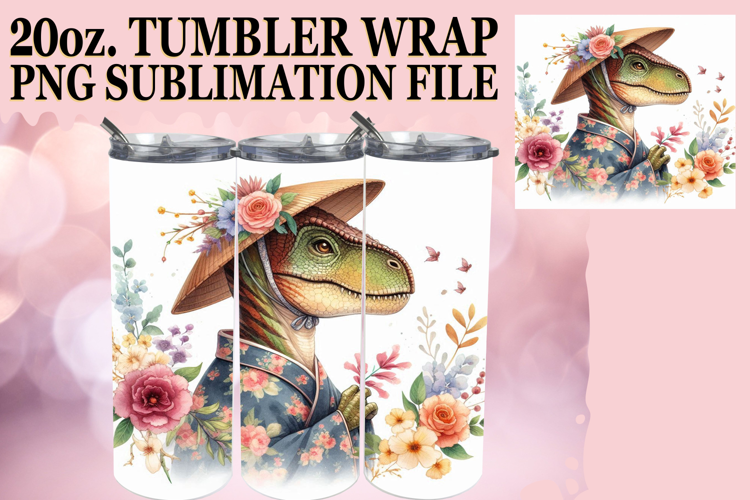 Dreamy escapes 20oz tumbler wrap, Dino example image 1