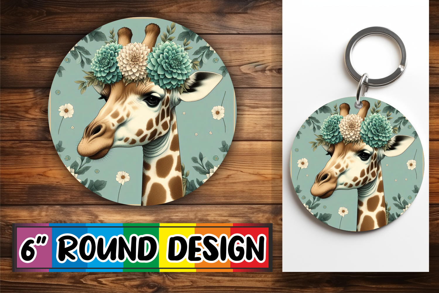 Similar Design Products to Bright Keychain Sublimation Circle, Giraffe