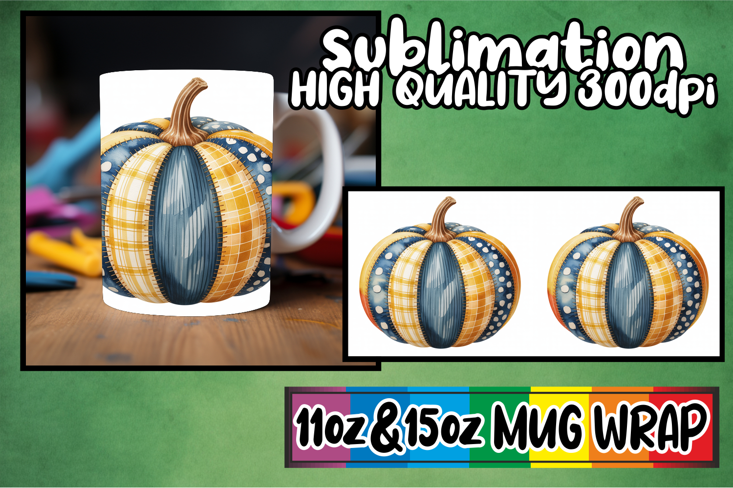 Cheerful days 11oz 15oz sublimation wrap, Pumpkin Watercolor
