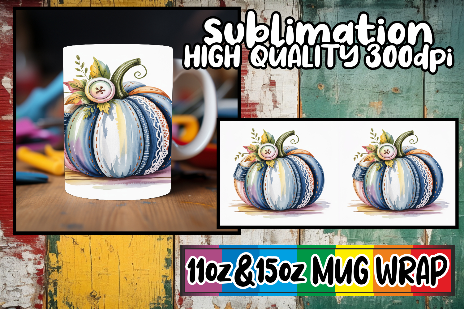 Lovely escapes 11oz 15oz mug wrap, Pumpkin Watercolor