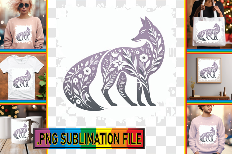 Playful TOTE BAG Gift PNG, Flower Animals example image 1