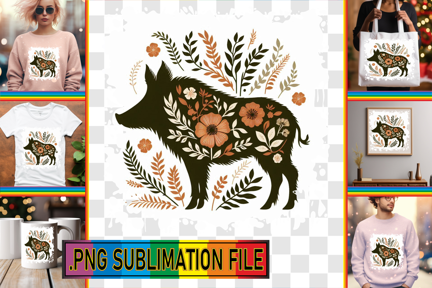 Cheerful Tote Bag Designs PNG, Flower Animals example image 1