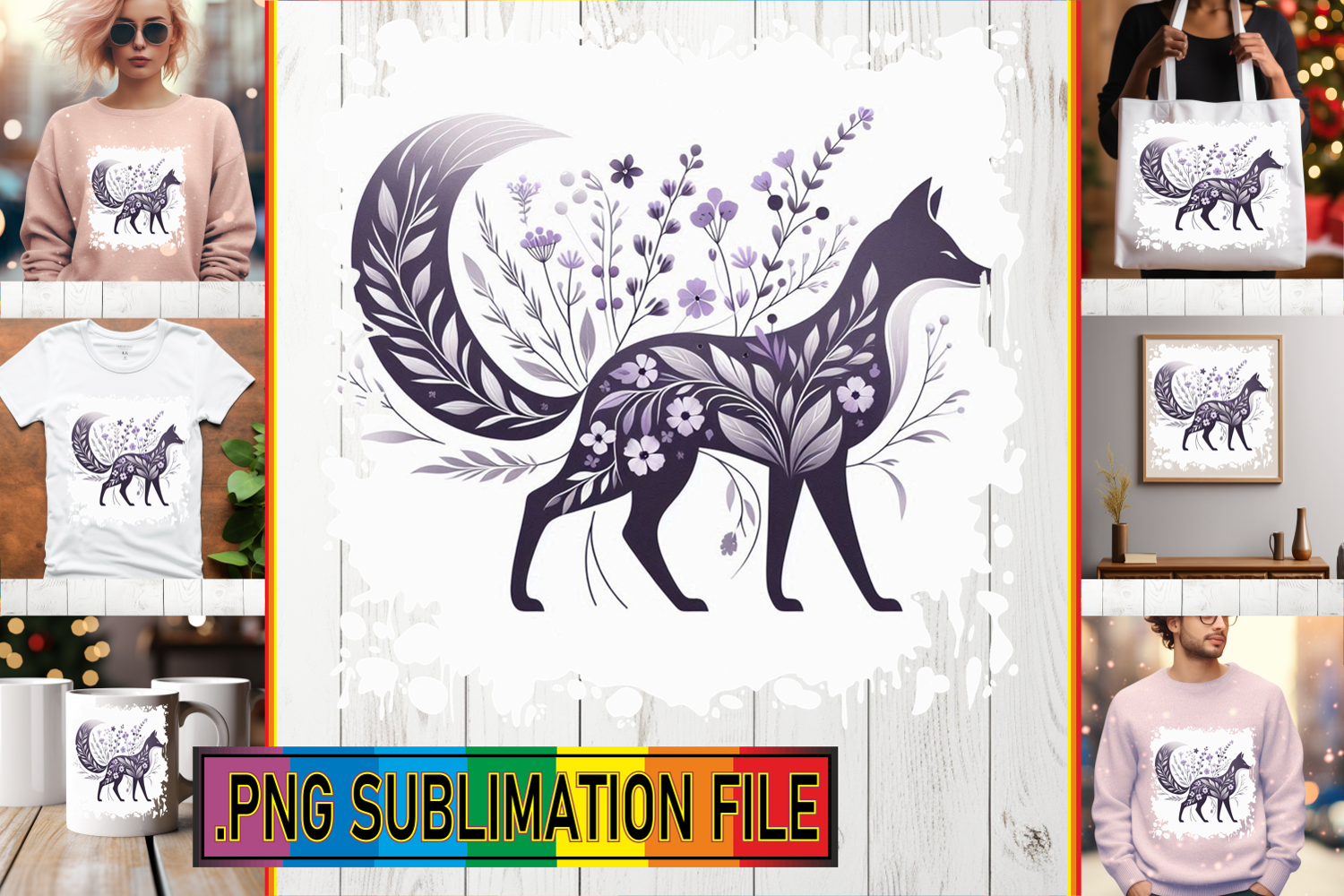 Playful TOTE BAG Art PNG, Flower Animals example image 1