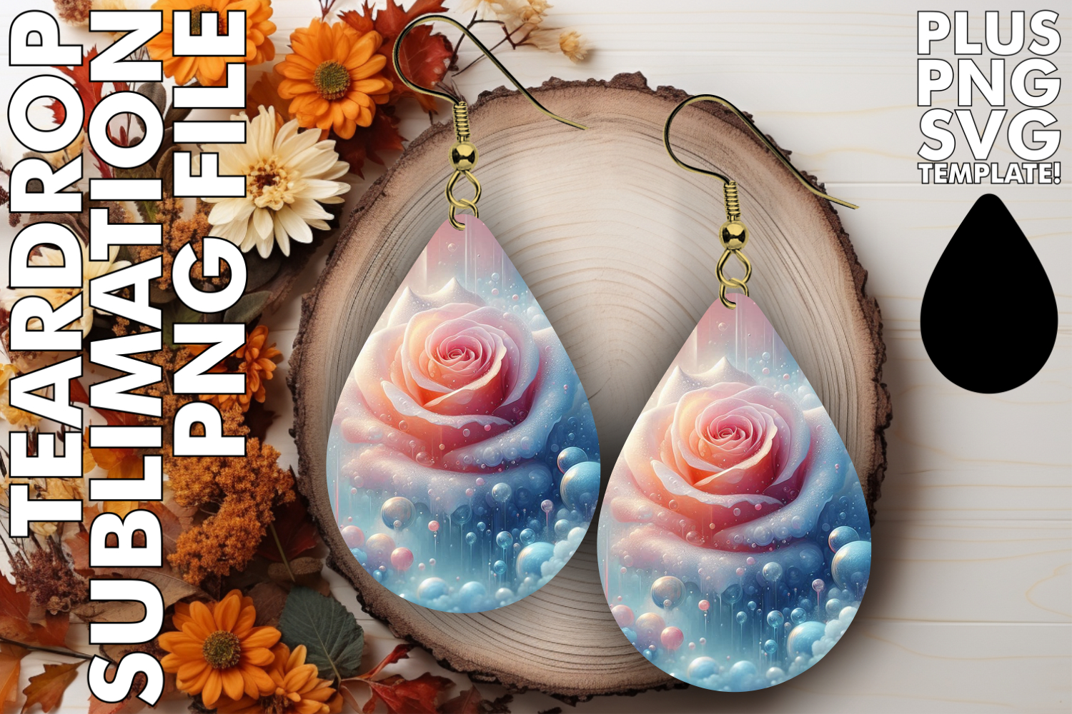 Unique TEARDROP Earrings Design PNG, 3D Flower
