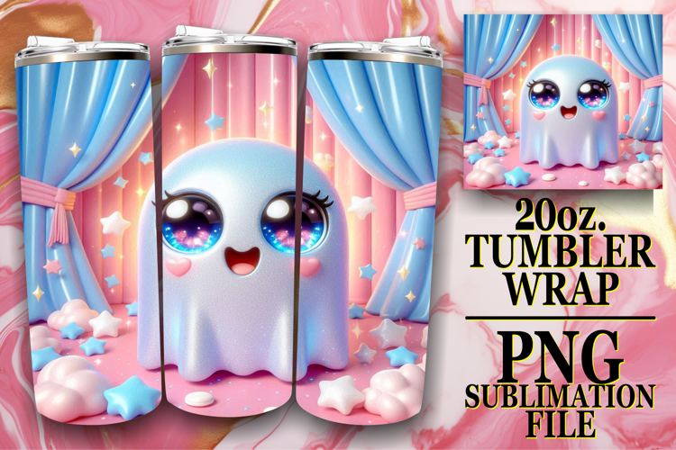 Bright Sublimation 20oz tumbler wrap, 3D Cute Ghost example image 1