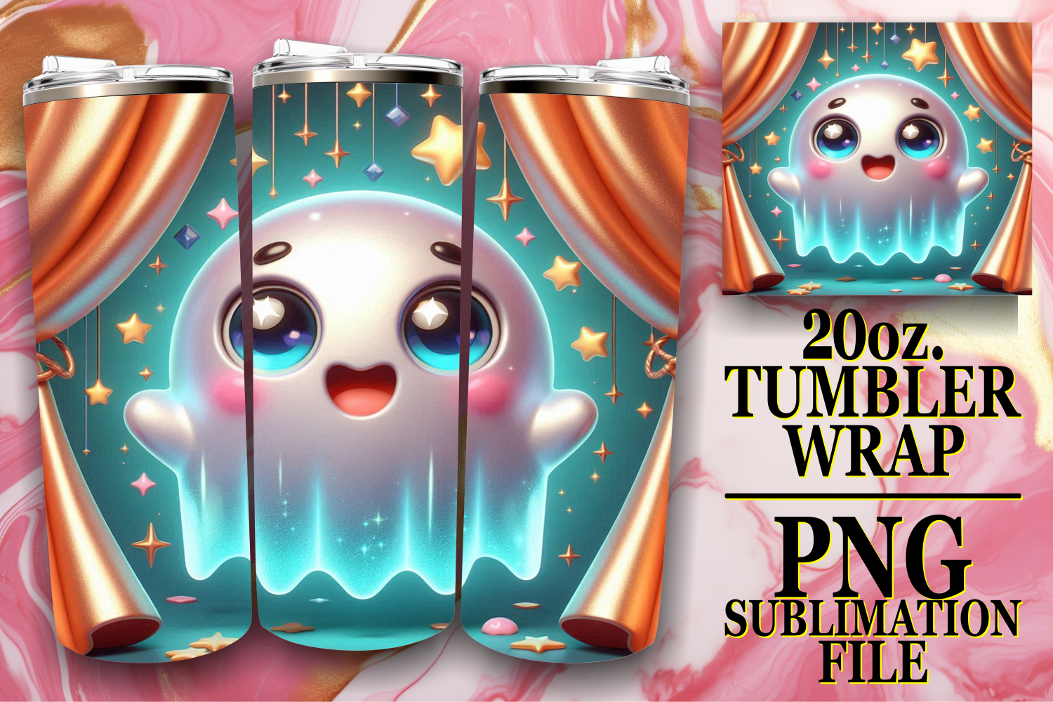 Joyful Reflections 20oz tumbler wrap, 3D Cute Ghost example image 1