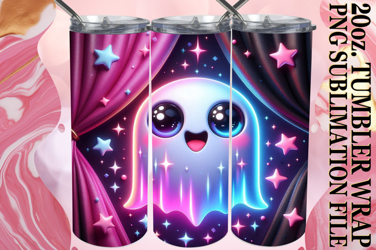 Bright Reflections 20oz tumbler wrap, 3D Cute Ghost example image 1