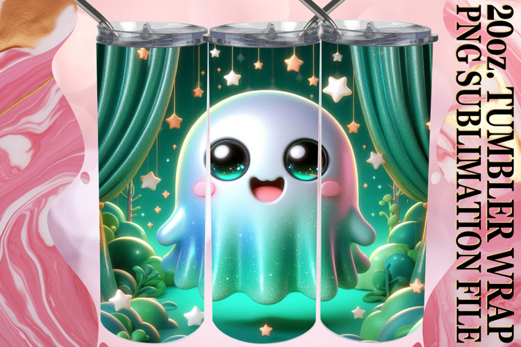 Blissful Reflections 20oz tumbler wrap, 3D Cute Ghost example image 1
