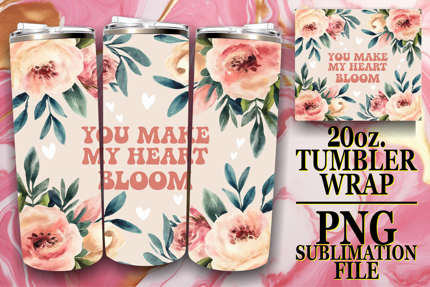 Radiant days 20oz tumbler wrap, Flower Quote