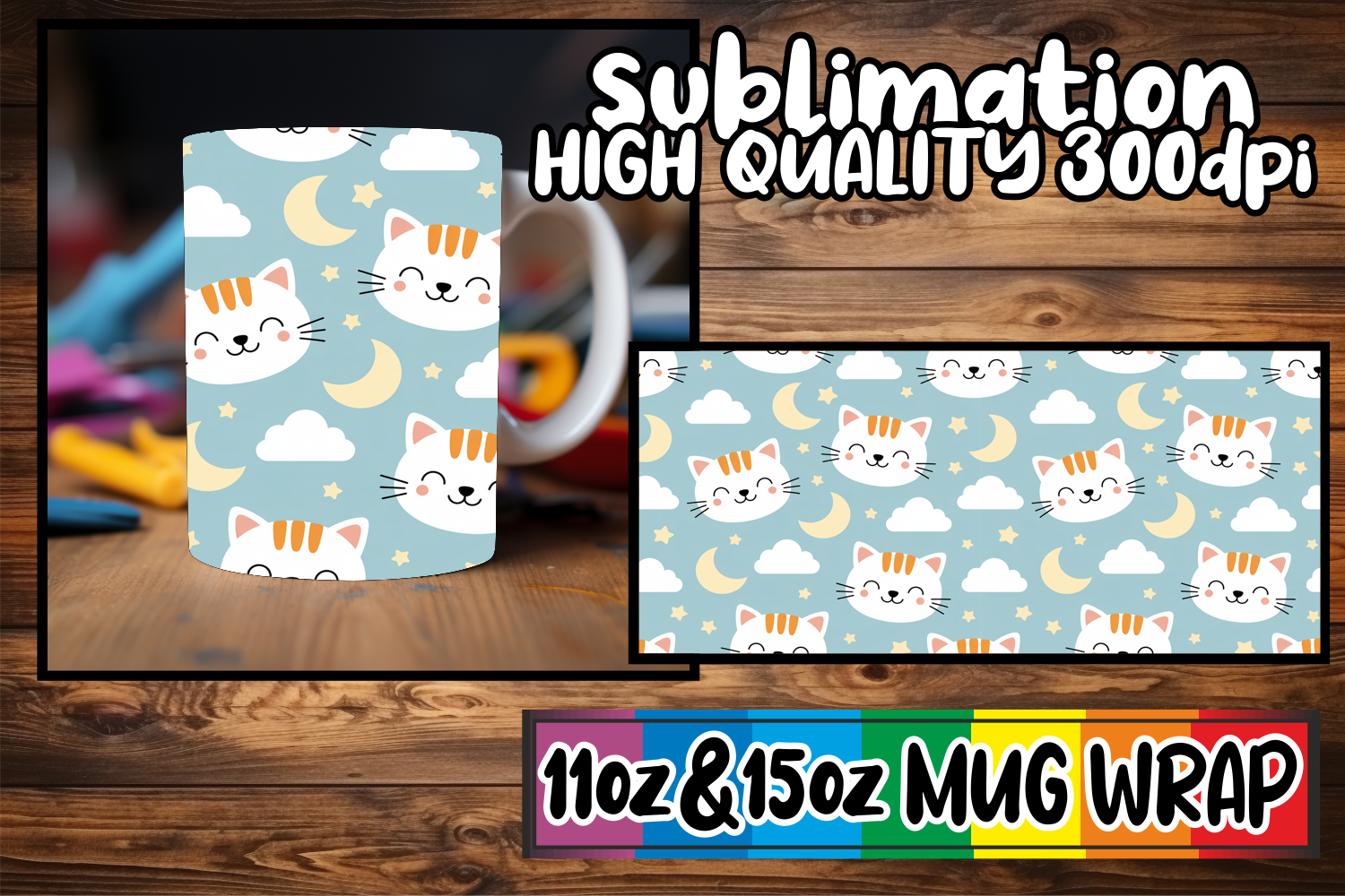 Joyful hearts 11oz 15oz sublimation wrap, Funny Cat