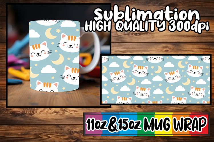 Joyful hearts 11oz 15oz sublimation wrap, Funny Cat example image 1