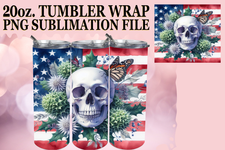 Uplifting spirits 20oz tumbler wrap, Skull USA example image 1