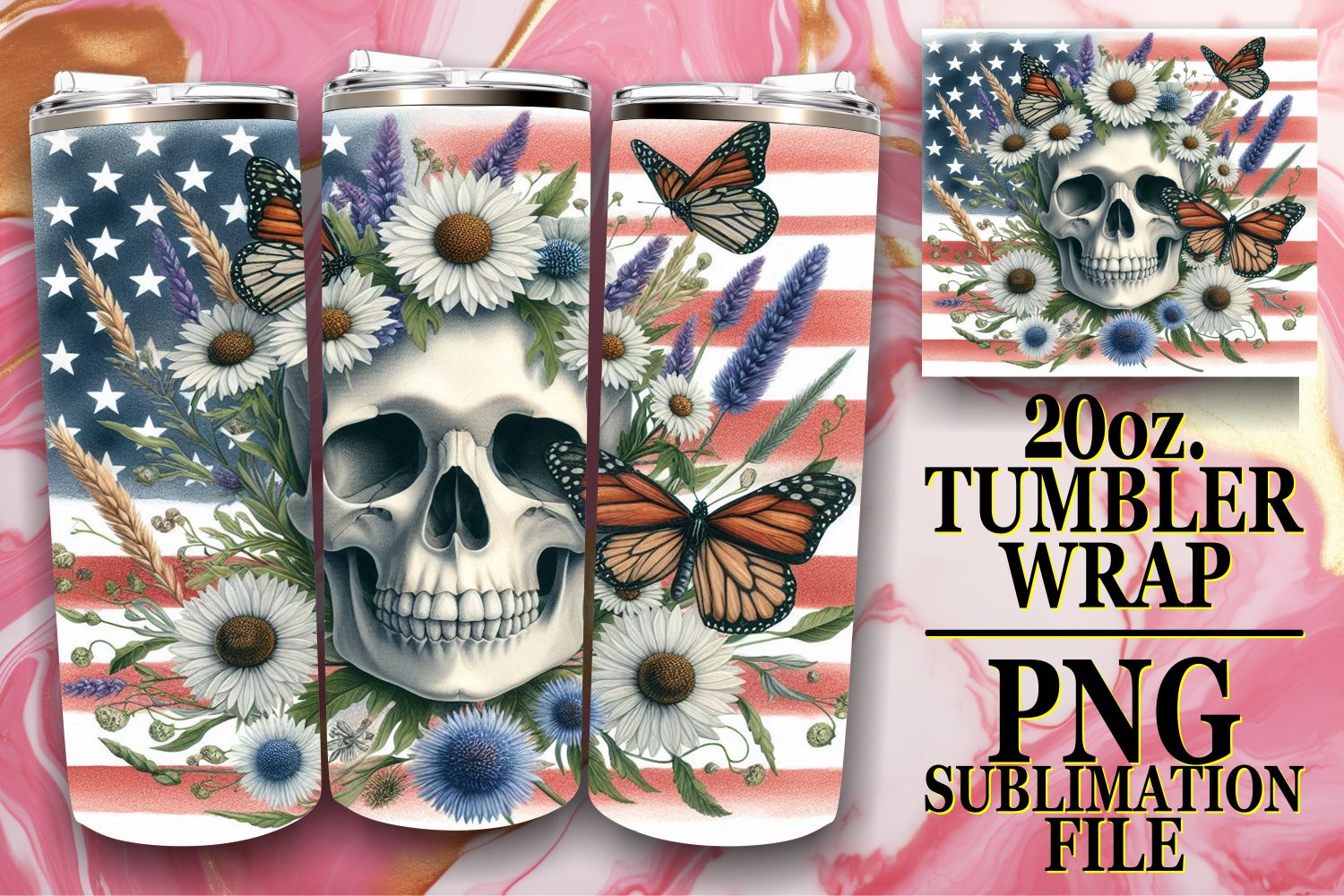 Bright love 20oz tumbler wrap, Skull USA example image 1