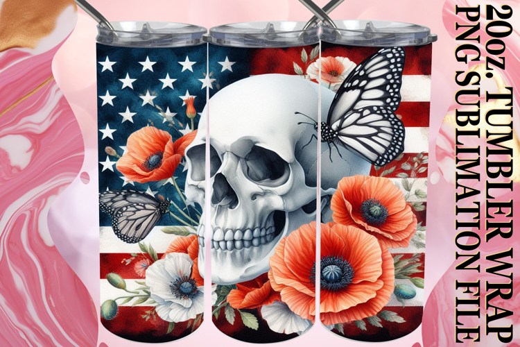 Magical mornings 20oz tumbler wrap, Skull USA example image 1