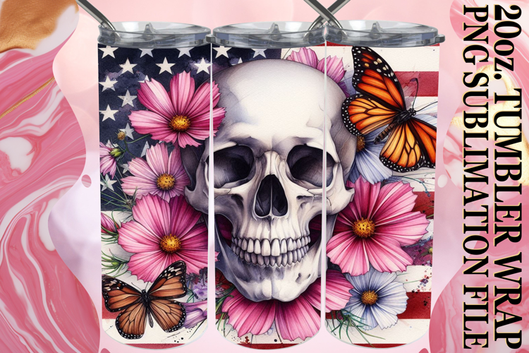 Radiant memories 20oz tumbler wrap, Skull USA example image 1