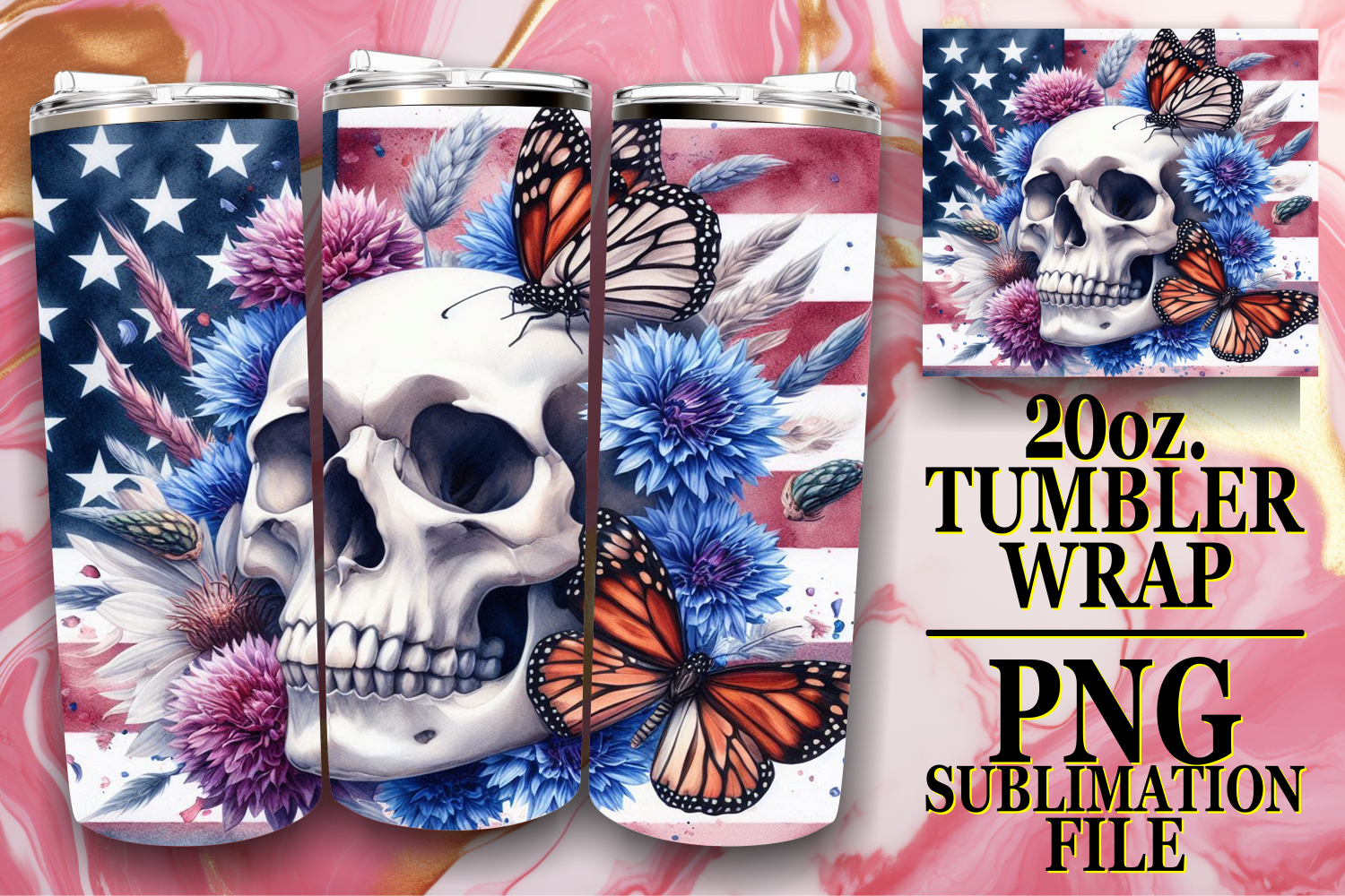 Wholesome joy 20oz tumbler wrap, Skull USA example image 1