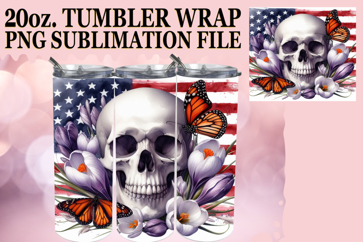BLISSFUL DAYS 20oz TUMBLER WRAP, Skull USA example image 1