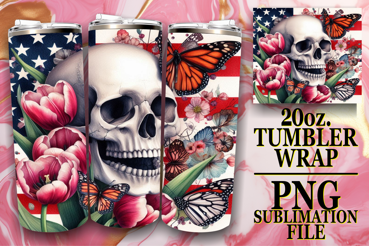 RADIANT SPIRITS 20oz TUMBLER WRAP, Skull USA