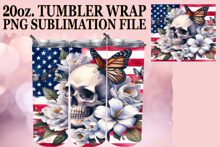 BRIGHT ADVENTURES 20oz TUMBLER WRAP, Skull USA example image 1