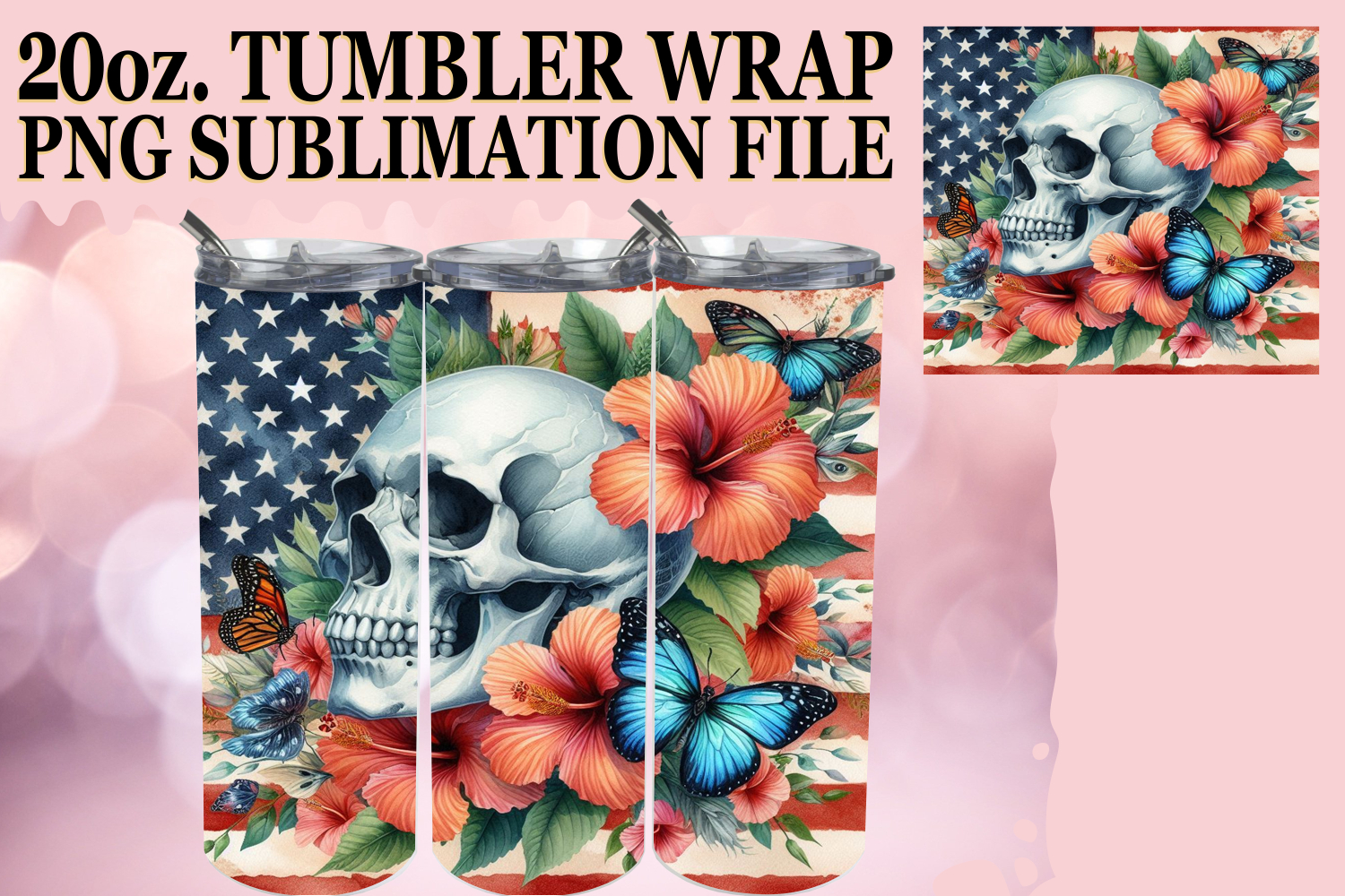 SWEET HARMONY 20oz TUMBLER WRAP, Skull USA example image 1