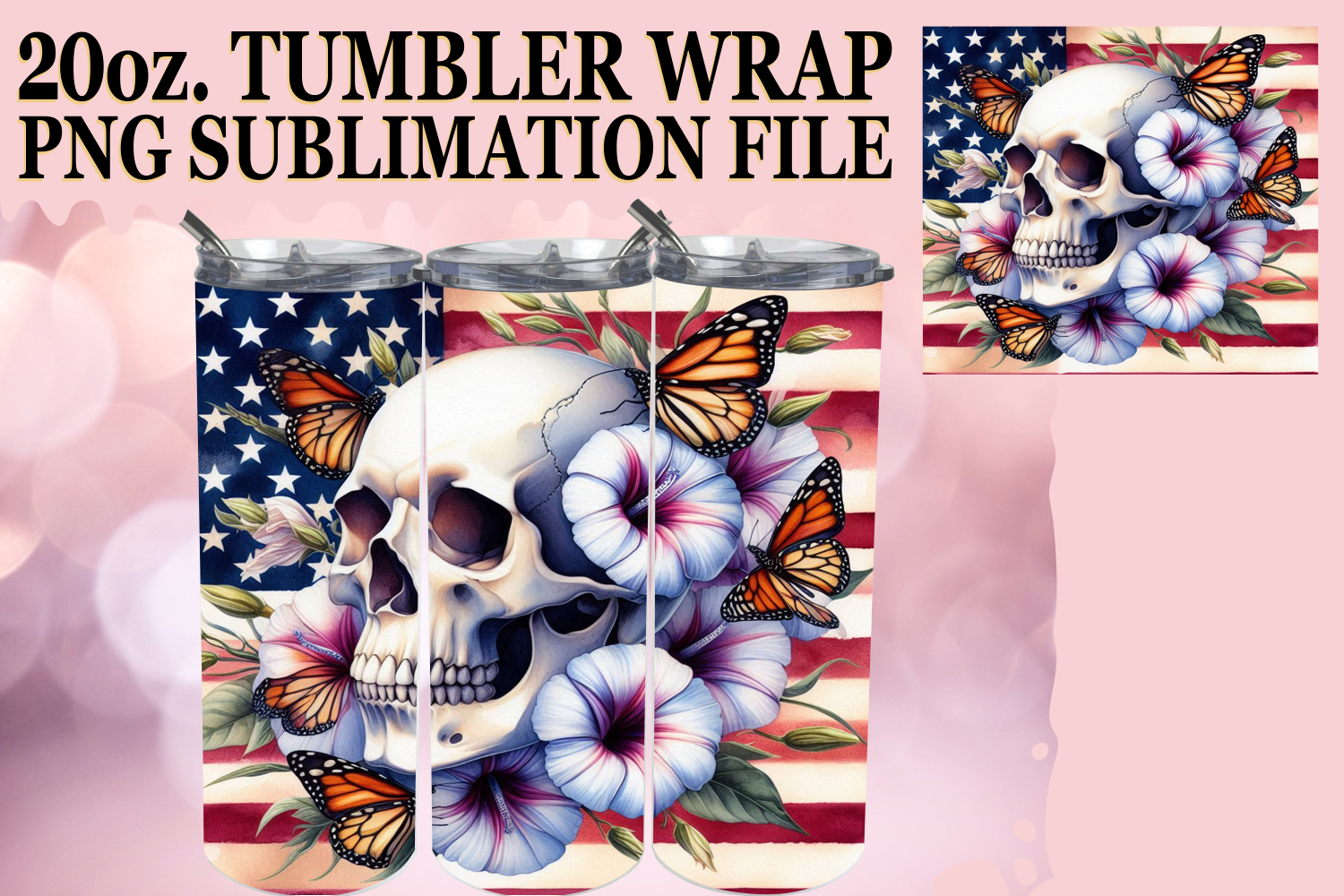 HAPPY VIBES 20oz TUMBLER WRAP, Skull USA example image 1