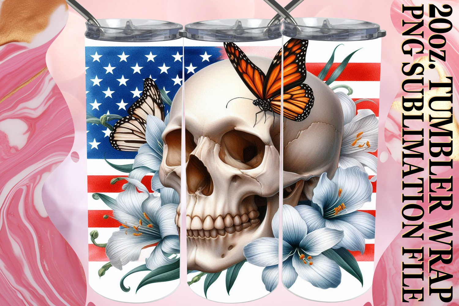 Cheerful Reflections 20oz tumbler wrap, Skull USA example image 1