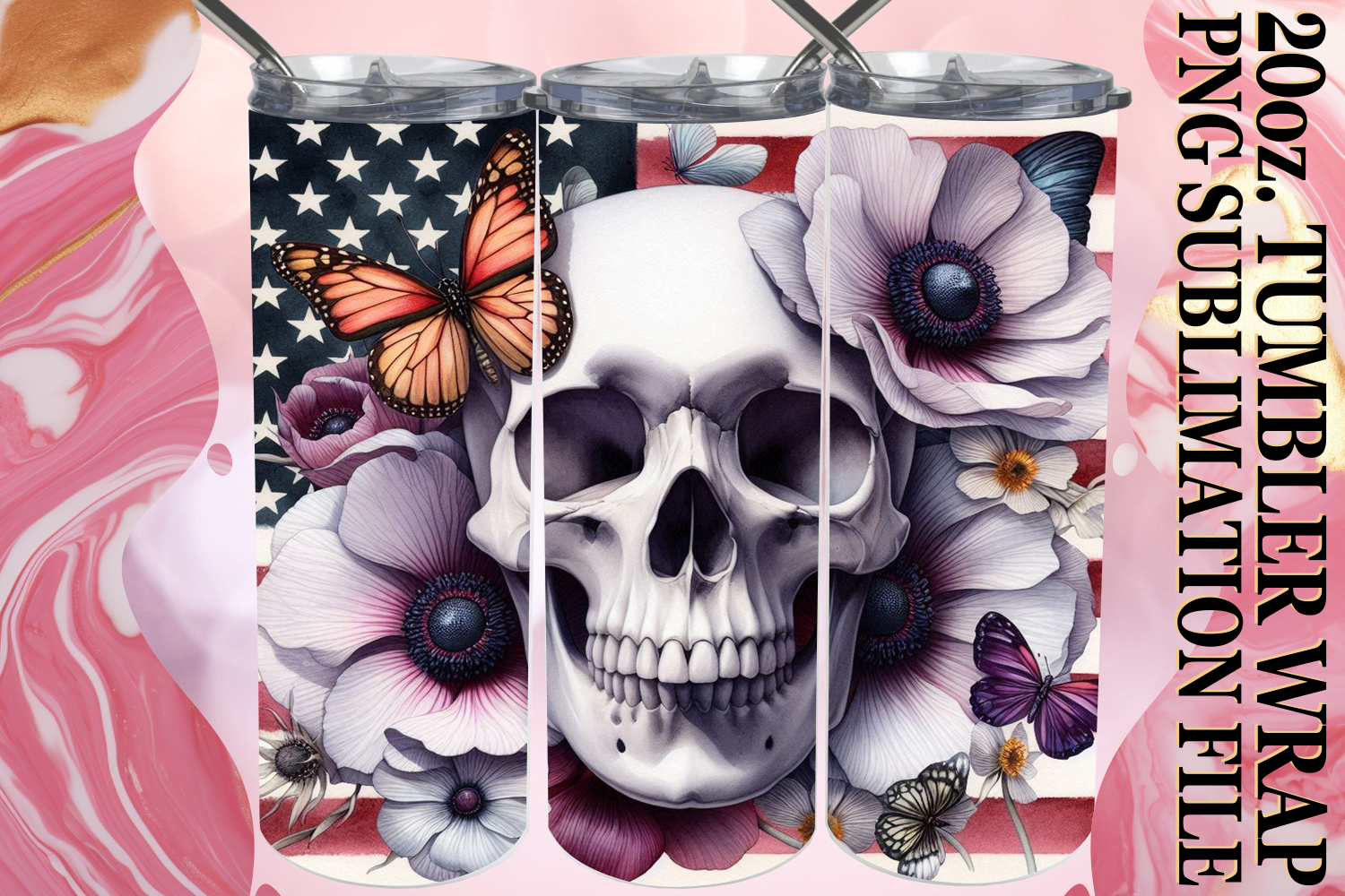 Joyful Hearts 20oz tumbler wrap, Skull USA example image 1