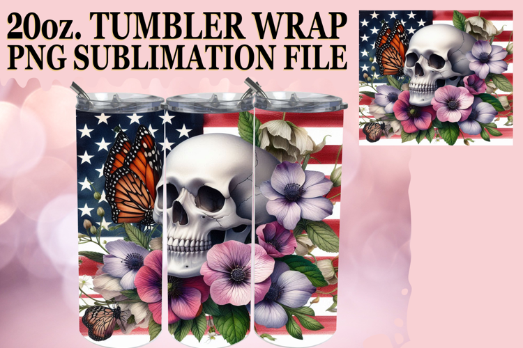 Radiant Mornings 20oz tumbler wrap, Skull USA example image 1