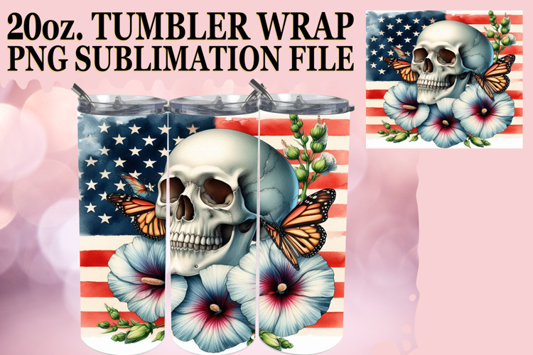 Serene Days 20oz tumbler wrap, Skull USA example image 1