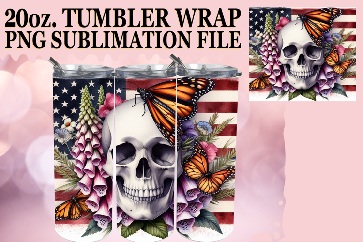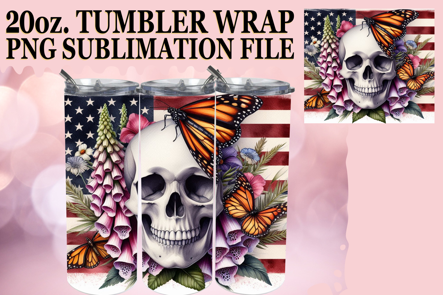Sublimation Delight 20oz tumbler wrap, Skull USA example image 1