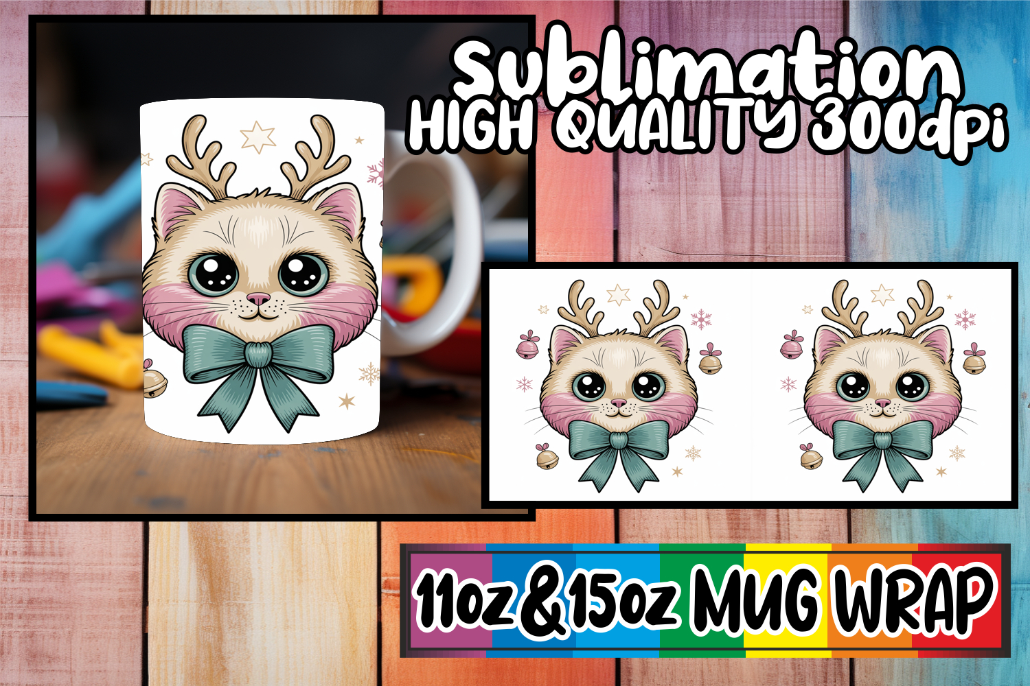 Bright outlooks 11oz 15oz sublimation wrap, Cute Christmas