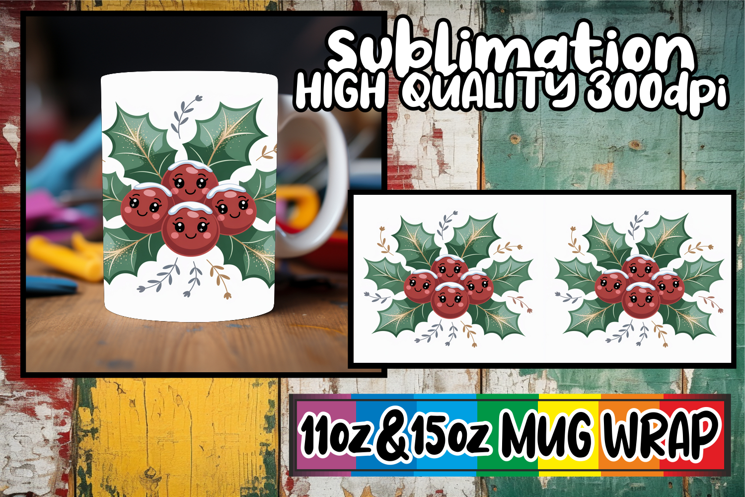 Enchanted days 11oz 15oz sublimation wrap, Cute Christmas