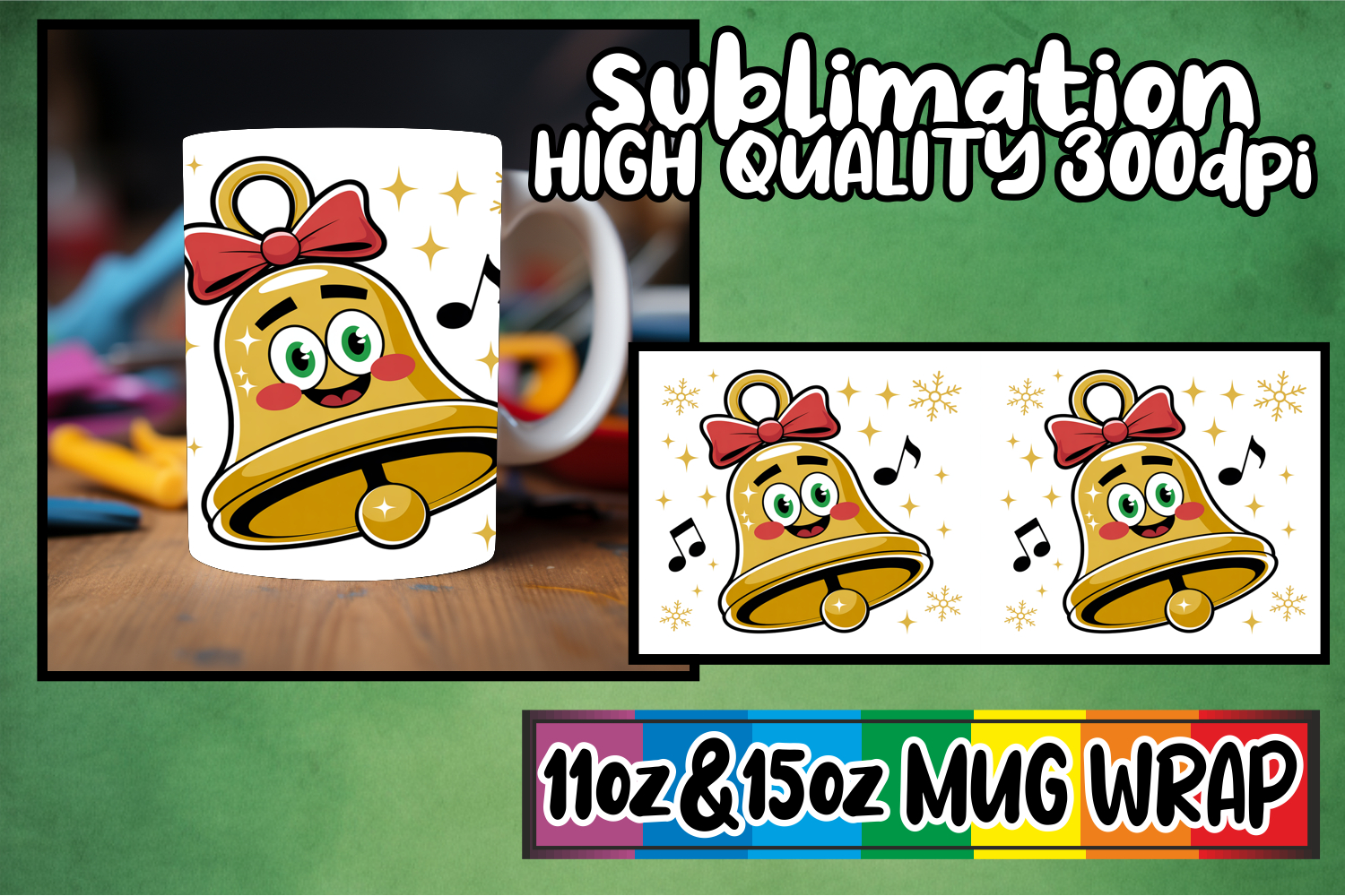 Radiant evenings 11oz 15oz sublimation wrap, Cute Christmas
